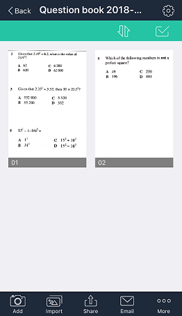 The "Question book" mode enables students & teachers to collage pictures of questions from practice books or quiz sheets and create a question book. You can use it as follows: